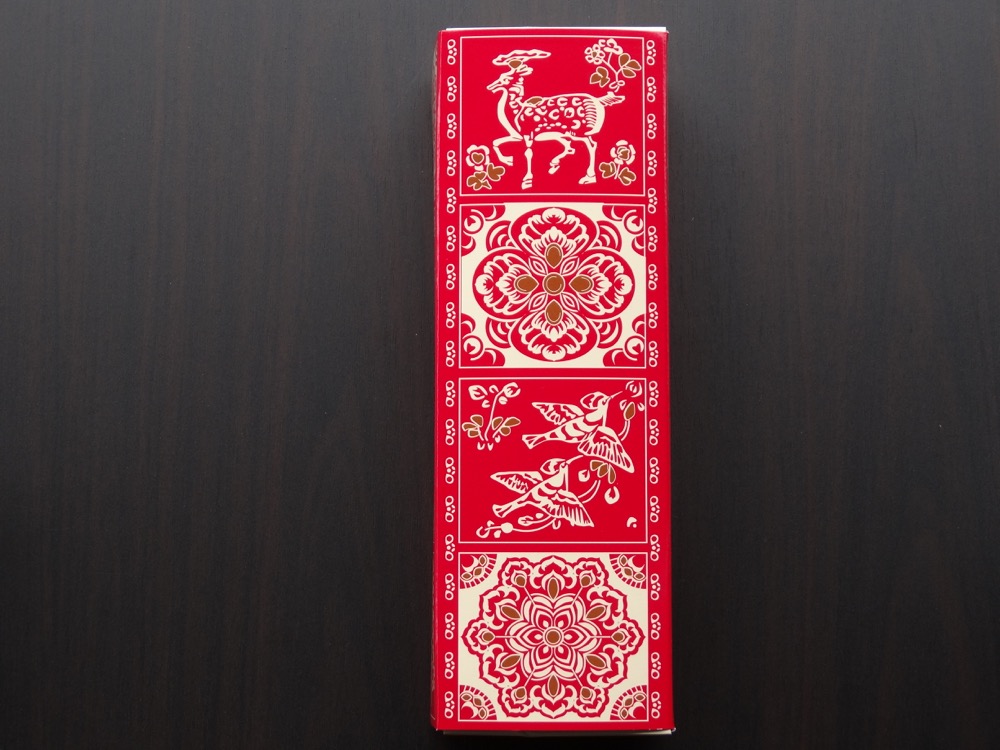 | 外装の形状 | 東大寺正倉院御物紋様の朱色パッケージ |