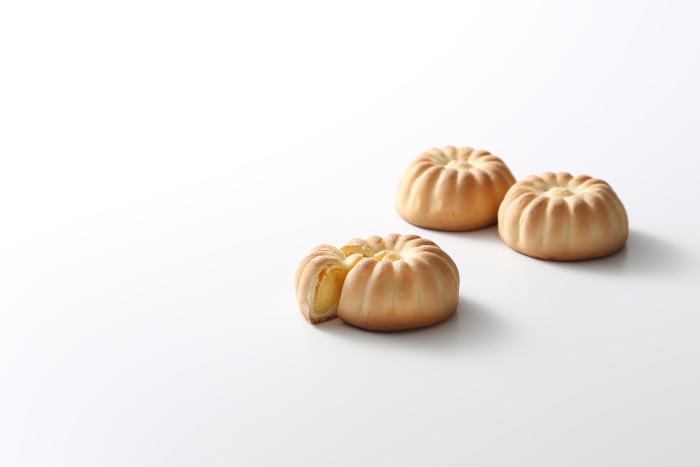 黄身餡のベースの白餡には、お茶席の上生菓子に使用する白小豆と更に高価でレア物の福白金時豆を使用した贅沢な焼き菓子です。 一般的に出回る餡よりも、粘りの無いあっさりとした餡です。餡の旨みが違います。