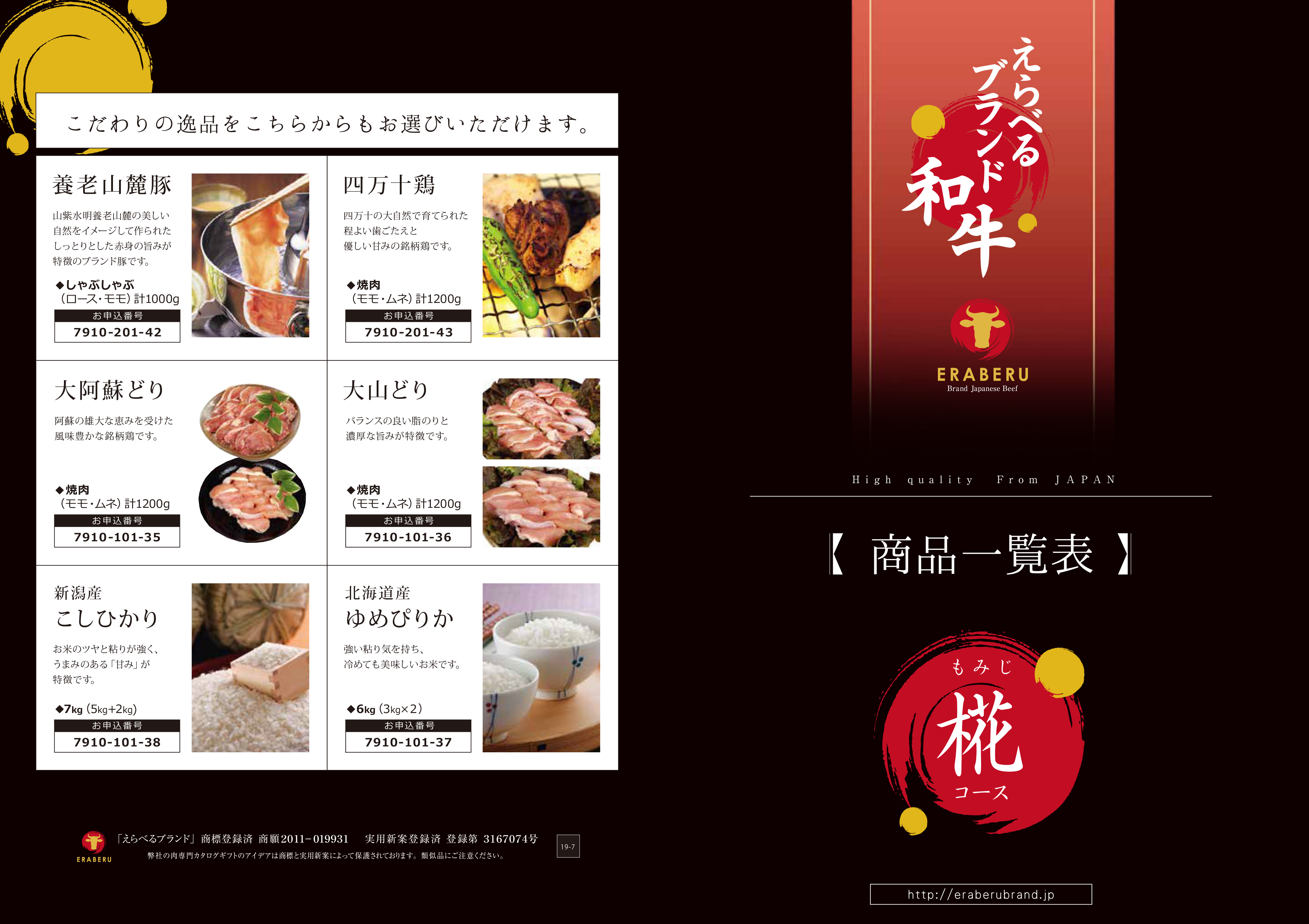 ブランド和牛の紹介や、美味しい牛肉レシピなどの豆知識も掲載されています。 受け取られた方は商品一覧表から、お好きなものをお選びいただけます。 [お届け内容] ●カタログ ●商品一覧表 ●はがき ●情報保護シール