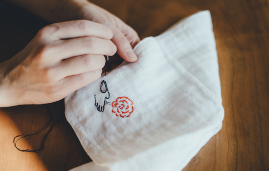 初心者から中級者まで、オリジナルのワンポイントハンカチづくりを楽しめるキットが自宅に届きます。他にも、お料理や音楽などを楽しめるコースがあります。