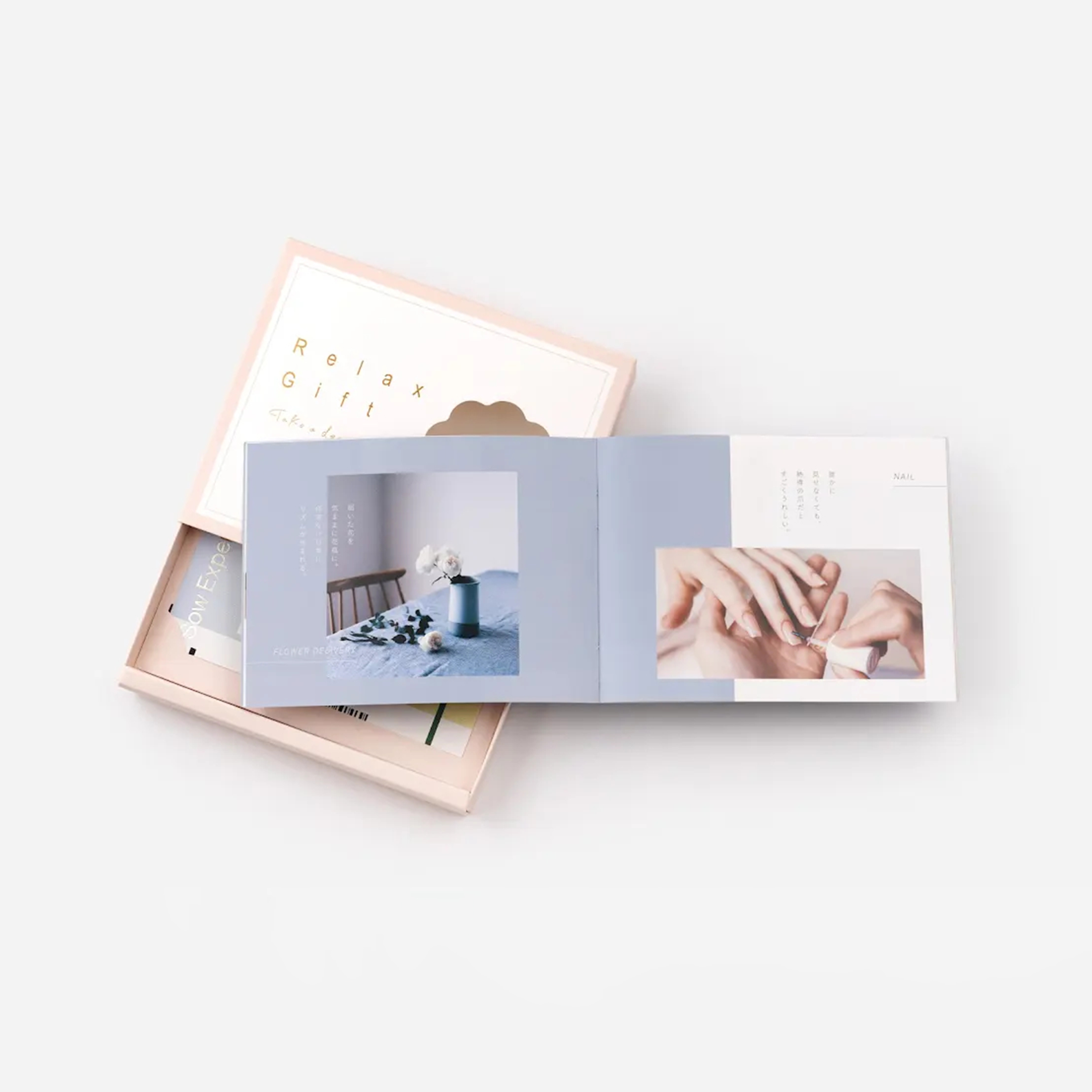 大口注文・法人のお問い合わせはこちら「SOW EXPERIENCE(ソウ・エクスペリエンス)」から、女性に人気の「Relax Gift(BLUE)」が登場しました。ボディケア、ヘッドスパ、ネイルなど体をケアする体験から、ヨガやフラワーレッスン、陶芸まで。新たな趣味との出会いや自分磨きのきっかけにもなるカタログです。街中で気軽に楽しめる”癒し”を、大切な方へプレゼントしてみませんか。