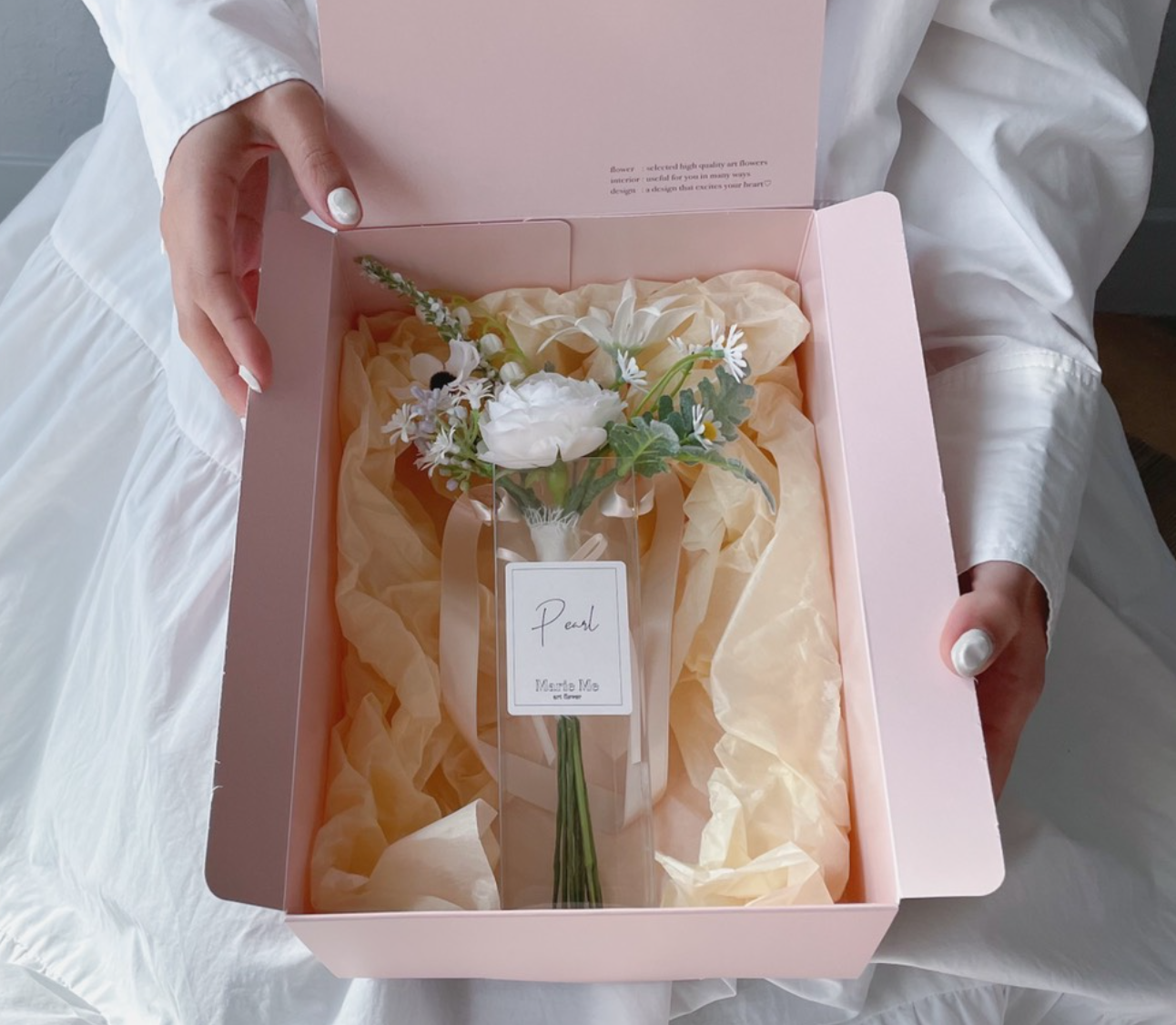 アーティフィシャルフラワーブーケとそれに合わせたオリジナルbox&bagを制作しています。 お客様にそれぞれのお気に入りを見つけてもらえるように何通りもの飾り方を楽しめる商品を提案しています。