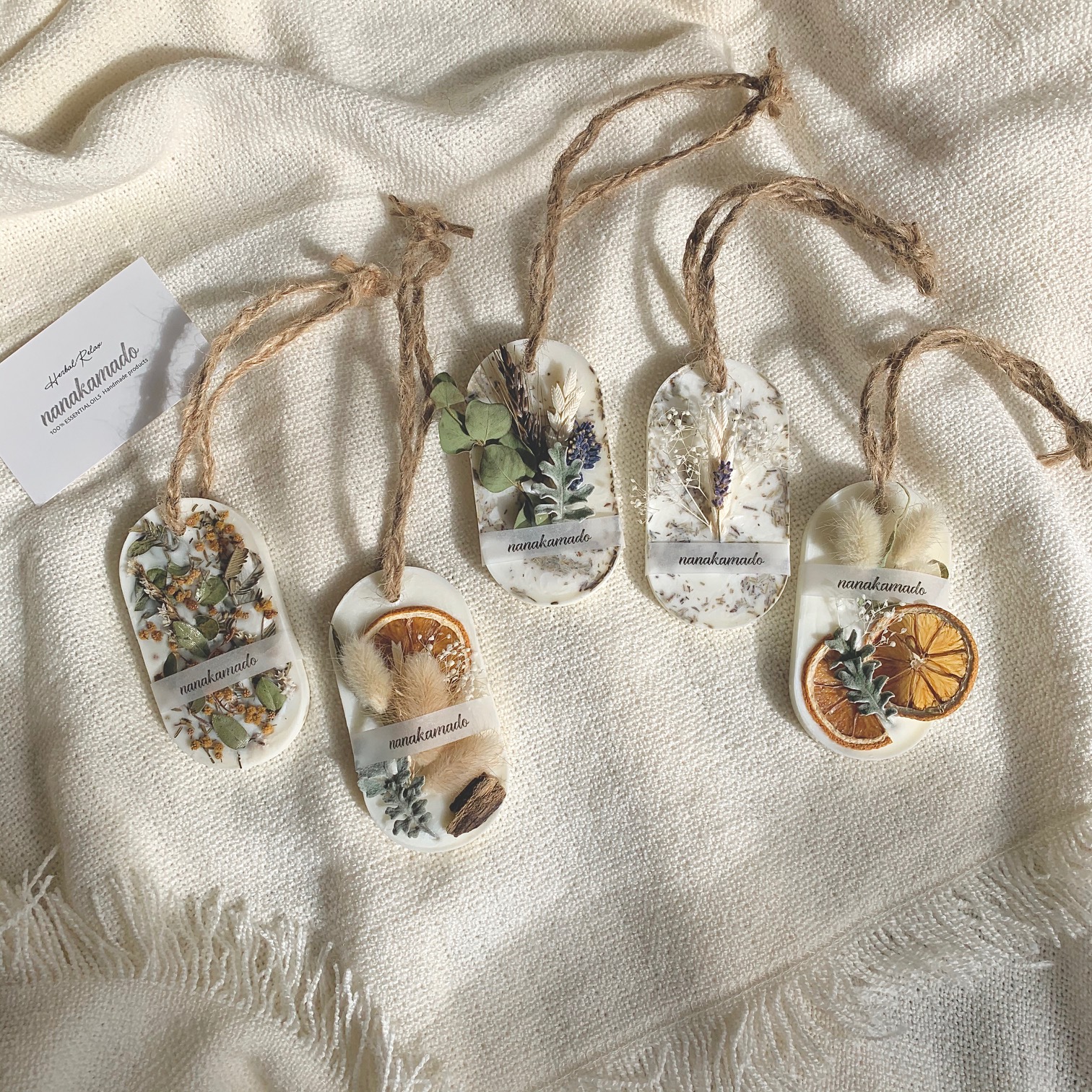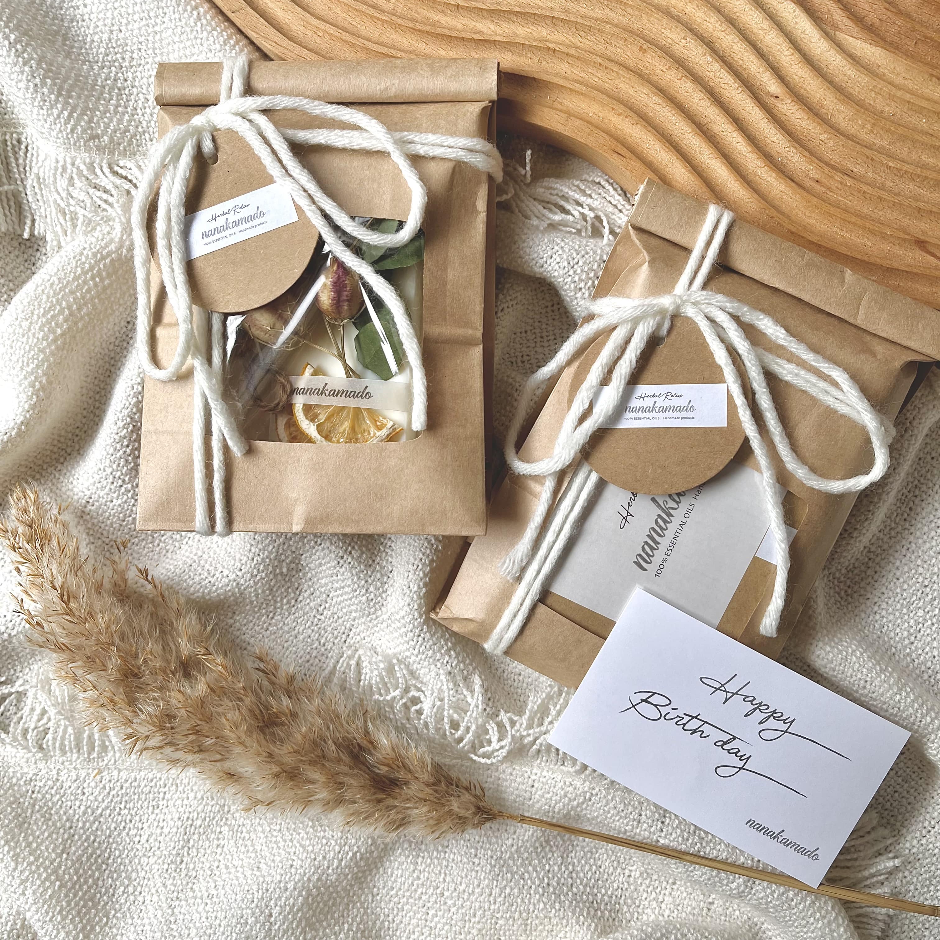 ナチュラルなデザインの天然素材のワックスサシェです。 10種類の選べる香りの中から、あなたのお気に入りの香りを見つけてみませんか? おしゃれな見た目と、お気に入りの香りで、暮らしに安らぎを... おしゃれなオプションラッピングで大切な方へのギフトにもおすすめです。
