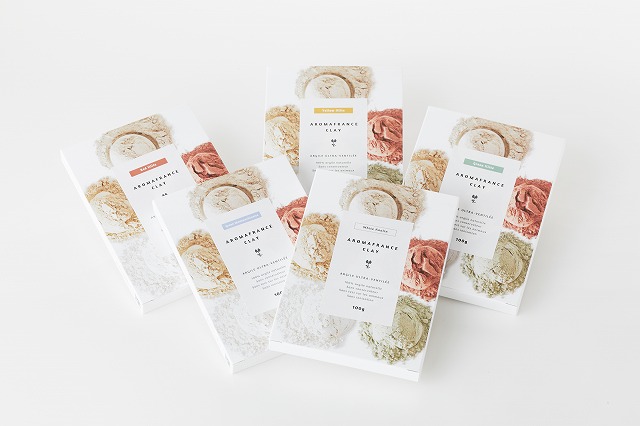 アイスクリームのようなクレイがかわいらしく5つ配置されており、商品ごとに色で分けられています。 パッケージで使用をしている紙は環境に配慮した【ハイブリットバガス紙(サトウキビの搾りかすを再利用)】を使用しており、ナチュラルな質感になっております。