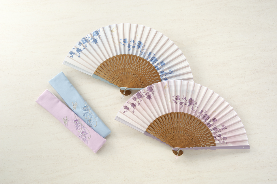 扇面を彩るパールとラメの入った捺染が上品なイメージを表現した”ローズシルエットセット”をお届け。パール塗装された親骨の繊細な煌きが魅力的です。使用感の良い手頃なサイズで、母の日や誕生日、お祝いの贈り物に喜ばれる扇子です。