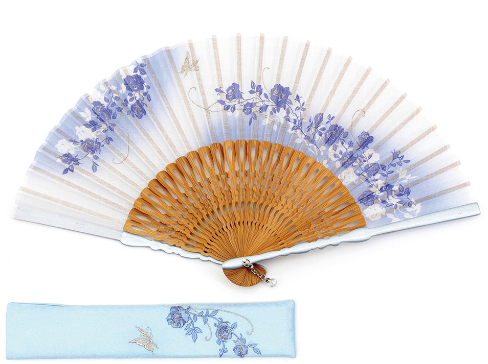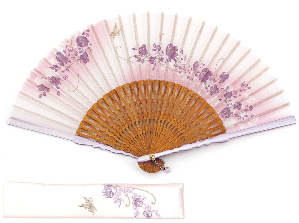 大口注文・法人のお問い合わせはこちら扇面を彩るパールとラメの入った捺染が上品なイメージを表現します。 使用感の良い手頃なサイズで、贈っても喜ばれる扇子です。