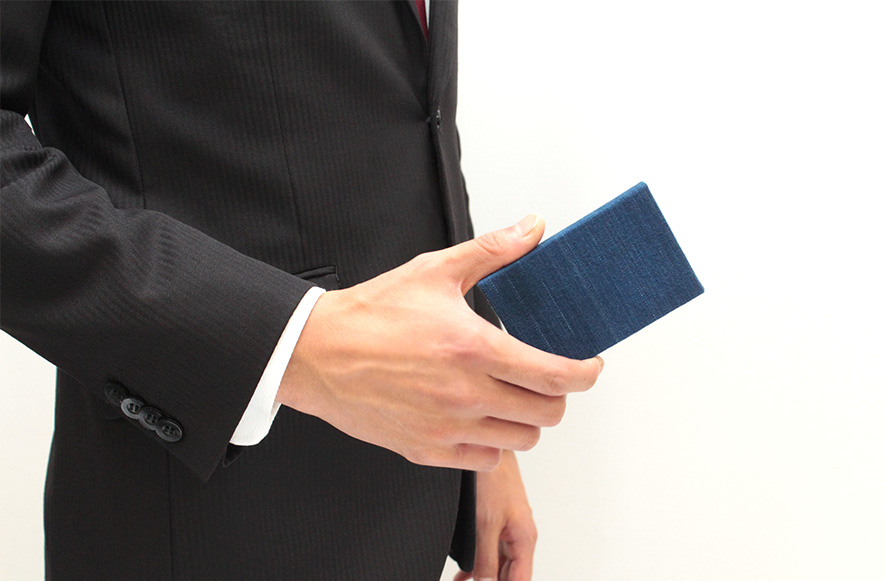 大口注文・法人のお問い合わせはこちら日本人に愛されるジャパンブルー、近年サッカー日本代表「サムライブルー」の藍としても有名です。 「日本資本主義の父」と呼ばれる偉人、渋沢栄一のビジネスのルーツは、実は武州正藍染の大元となる、染料「藍玉」の売買でした。 渋沢のアイディアで高品質の藍を栽培した武州では、「藍田は家を興す」とまで言われるほど藍で栄えました。 現代を生きるビジネスマンの武器である名刺ケース、日本で永く愛され、勝利を呼び込んできた縁起の良い藍色を使用した、 武州正藍染の名刺ケースを携えてお客様にお会いしてみてはいかがでしょうか。 セットでお持ちいただけるパスケースもご用意しております。