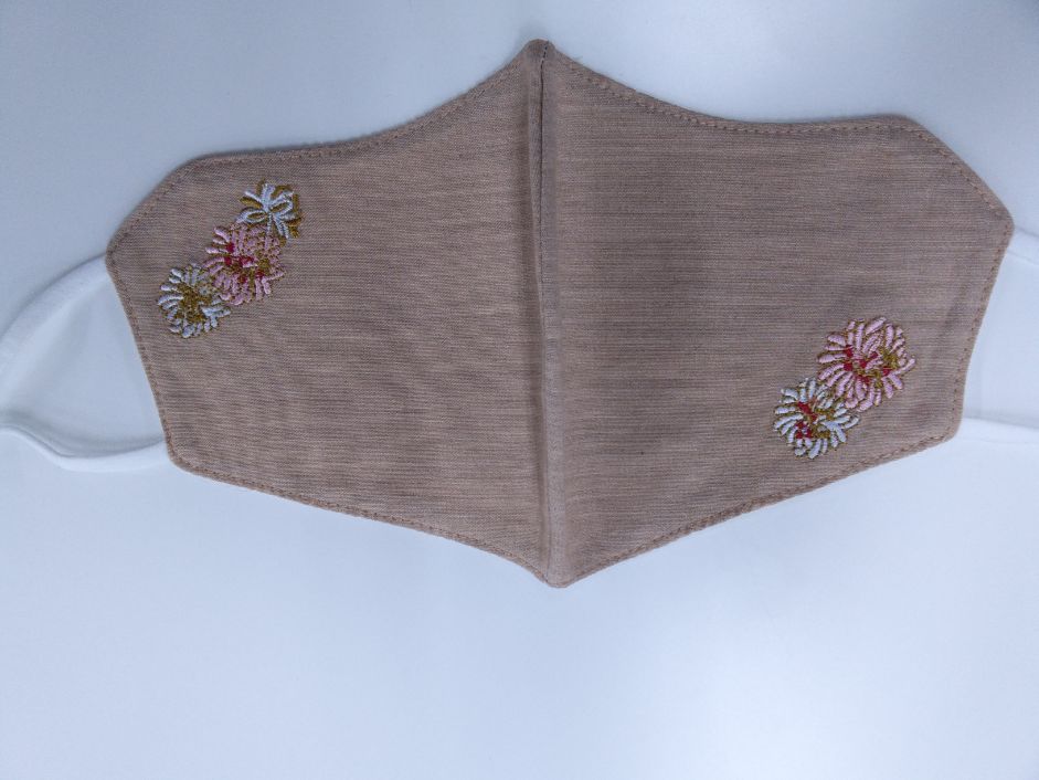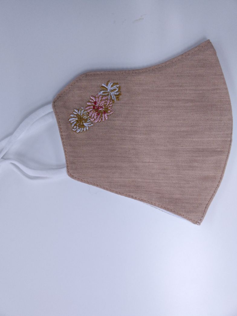 ベージュをベースにブランドアイコンのクリザンテームをワンポイントであしらったお洒落なファッションマスクです。
