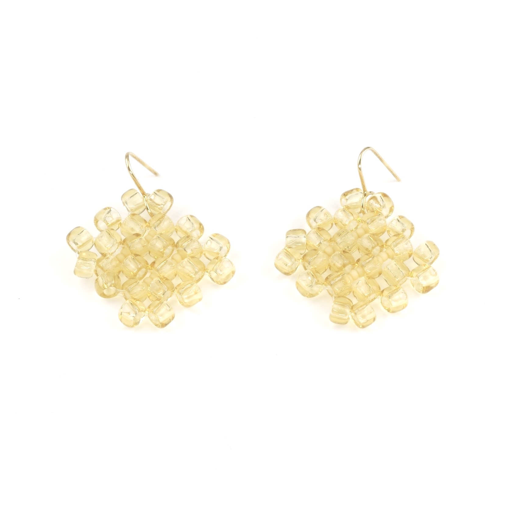 モチーフはガラスビーズを使用しております。 クリアータイプのピアス金具はシルバー925にニッケルフリーのロジウム加工をしています。 ゴールドタイプのモチーフのピアス金具はシルバー925に金メッキをかけています。 ピアスキャッチは柔らかいシリコンを使用しております。 ガラスのビーズは全て広島のTOHO BEADSを使用、ハンドメイド製品です。