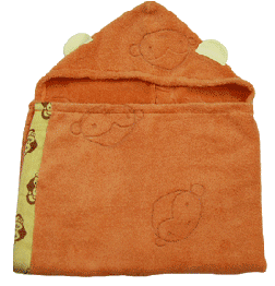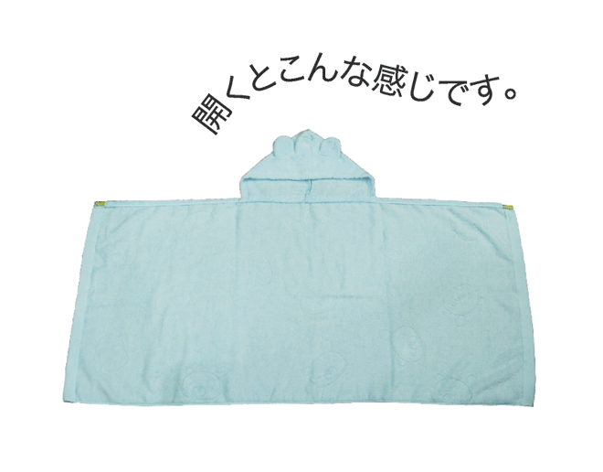 ふわふわの生地の赤ちゃんに優しいフードバスタオルです。