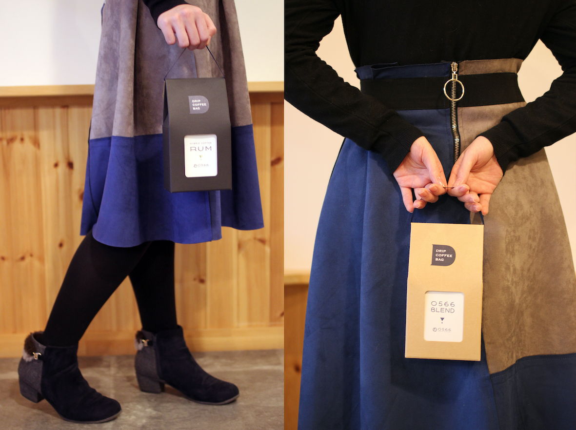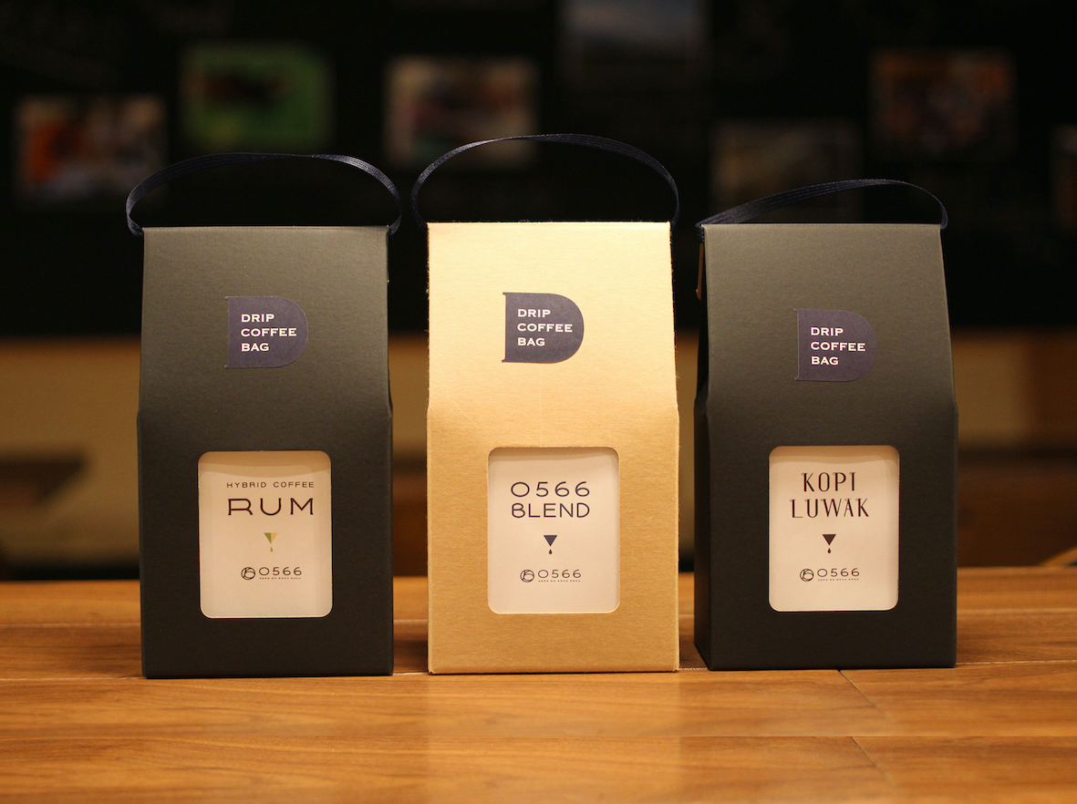 【0566珈琲製作所】のスタンプが刻印された、 落ち着いた雰囲気のクラフトボックスに入っています。 3種類それぞれのパッケージには持ち手がついていて、お裾分けする際にも便利です。