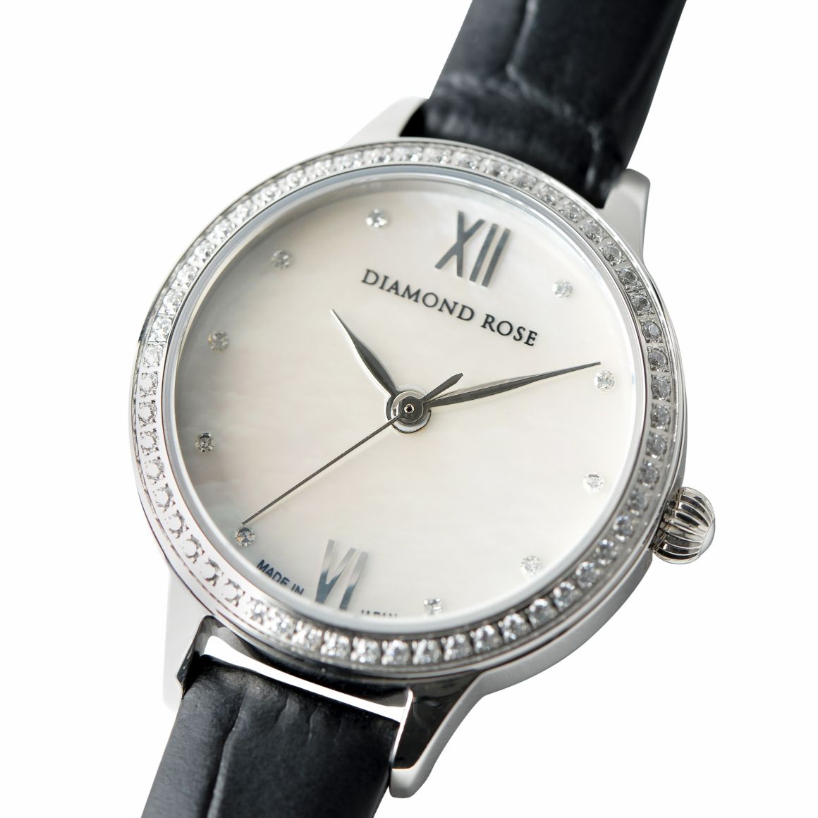 大口注文・法人のお問い合わせはこちらダイヤモンドの輝きを宿したこだわりの時計「DIAMONDROSE WATCH」と最高級プリザーブドローズ「AMOROSA」がひとつになりました。 確かな品質と上質なデザインを兼ね備えた時計と付属の専用ギフトボックスにはダイヤモンドの繊細な輝きを宿すプレミアムなローズをアレンジ。 あなたの大切な時間を彩り、記憶と心に刻む特別なギフトです。 若い時、大人になった時、年を重ねた時、 その瞬間の年齢、積み重ねた年や歳月は すべて魅力で輝きにあふれています。 その輝きを表現するため人気のラウンド ケースにたくさんの煌めきをふんだんに あしらいました。 フェイス周りにはジルコニアをしきつめ、 文字盤にはVSクラスの天然ダイヤモンド を10箇所に配して、ジュエリーのように 燦然と輝きます。 さらにクロコダイル調 型押しストラップ でエレガントさを引き立てます。 シックなデザインに華麗なストーンたち がバランスよく調和し、装飾的ながらも 品は失わない。どんなシーンでも魅力的 な手元を演出してくれます。 大切な人との瞬間、歳月をより煌びやか で素敵に彩ります。