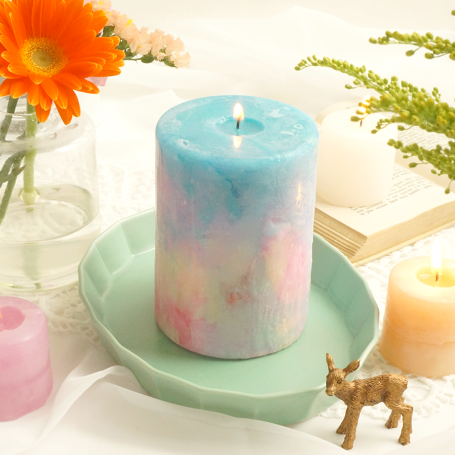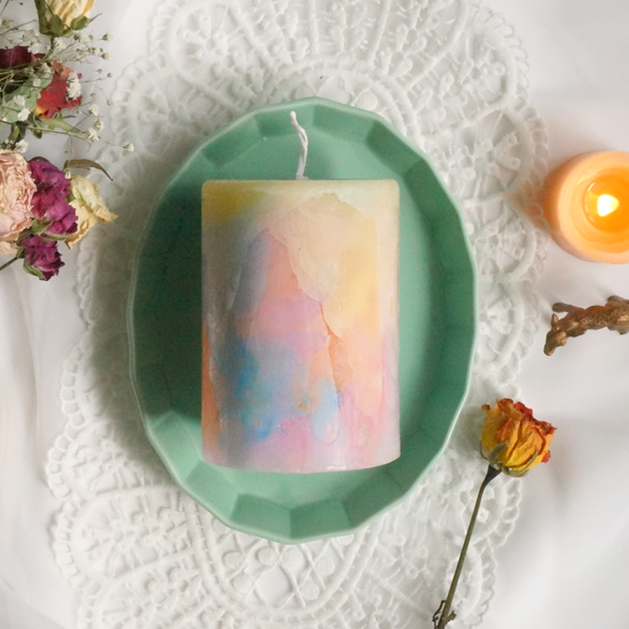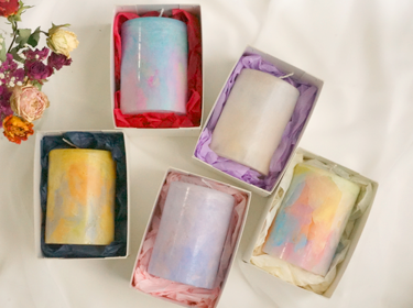 さまざまなカラーでお仕立てしたグラデーションキャンドルです。絵画のように絵の具が混ざりあったデザインです。