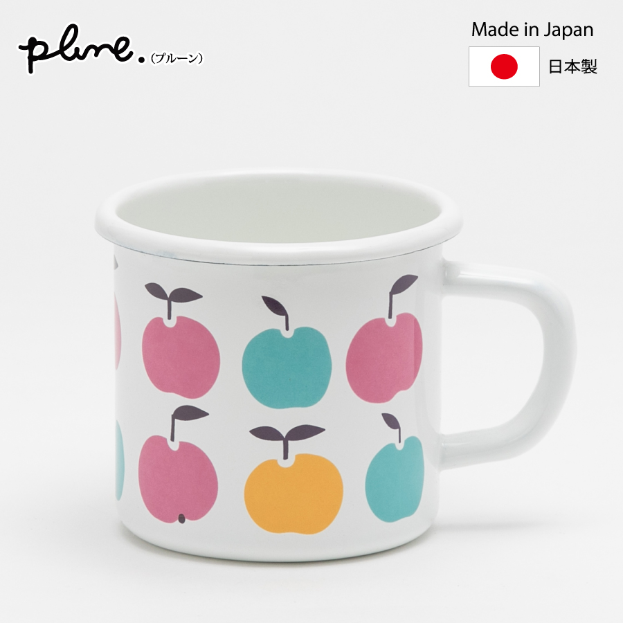 耐久性、耐熱性、保温性に優れたホーロー製マグカップ。ホーローの美しい光沢と色合い、プルーンのかわいいデザインが楽しいティータイムを演出します。