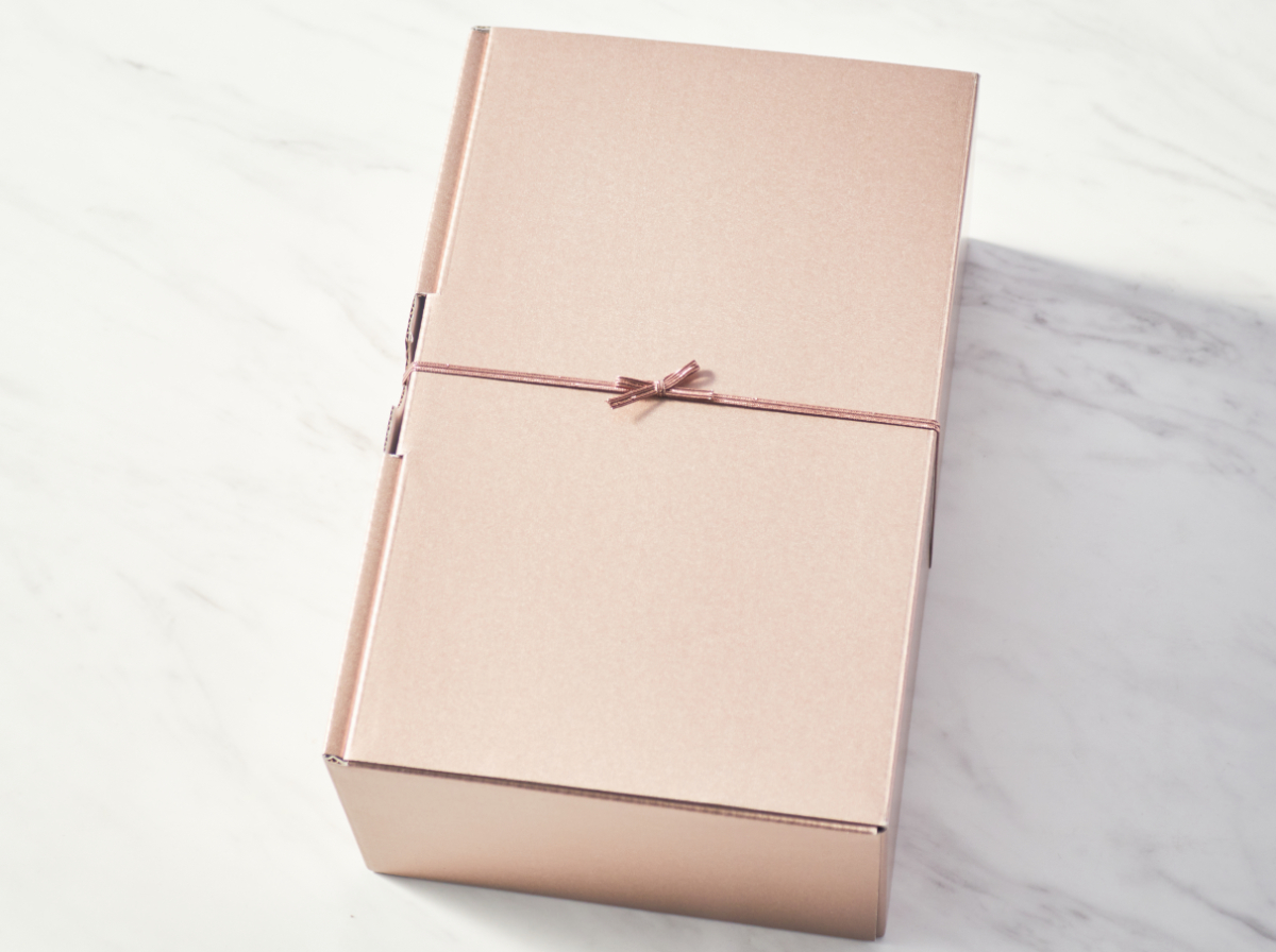 シャンパンピンクの上品な色合いのギフトボックスです。