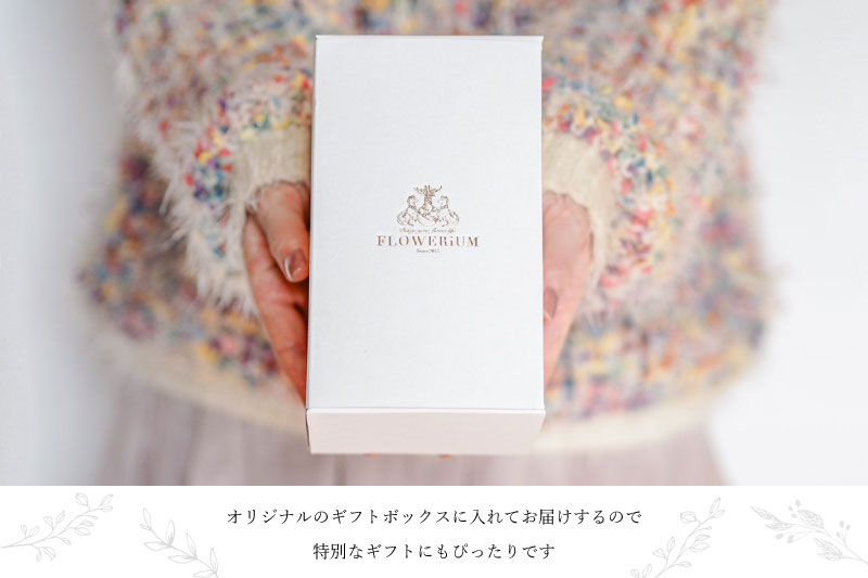 ギフトの定番は言わずとしれたお花になりますが、花だけだと物足りないですよね。そんな方におすすめな「フラワリウム」は、贈る人・貰った人全員が笑顔になる素敵な贈り物♡ぜひ大好きな方に、日頃の感謝の気持ちを込めて「フラワリウム」を贈りませんか? ※巾着は有料です。在庫状況によりお選びいただけない場合がございます。オプション選択画面にてご確認ください。