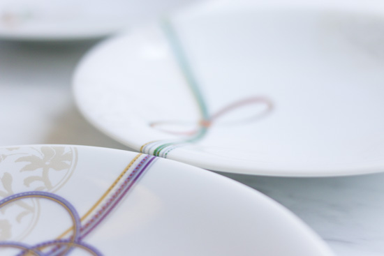 一枚一枚水引の色やデザインが違うので、お惣菜・生菓子・果物など多様な素材にもピッタリとマッチし、日常の食卓の風景に彩りを添えてくれます♡さらにお皿を一枚一枚つなげると…… キレイに「結び」が出来上がる、遊び心も詰まったお皿です。