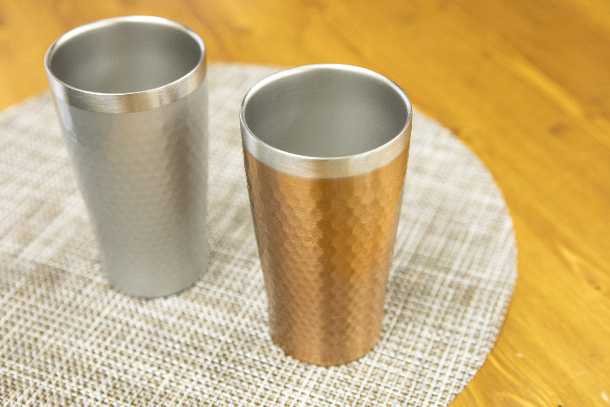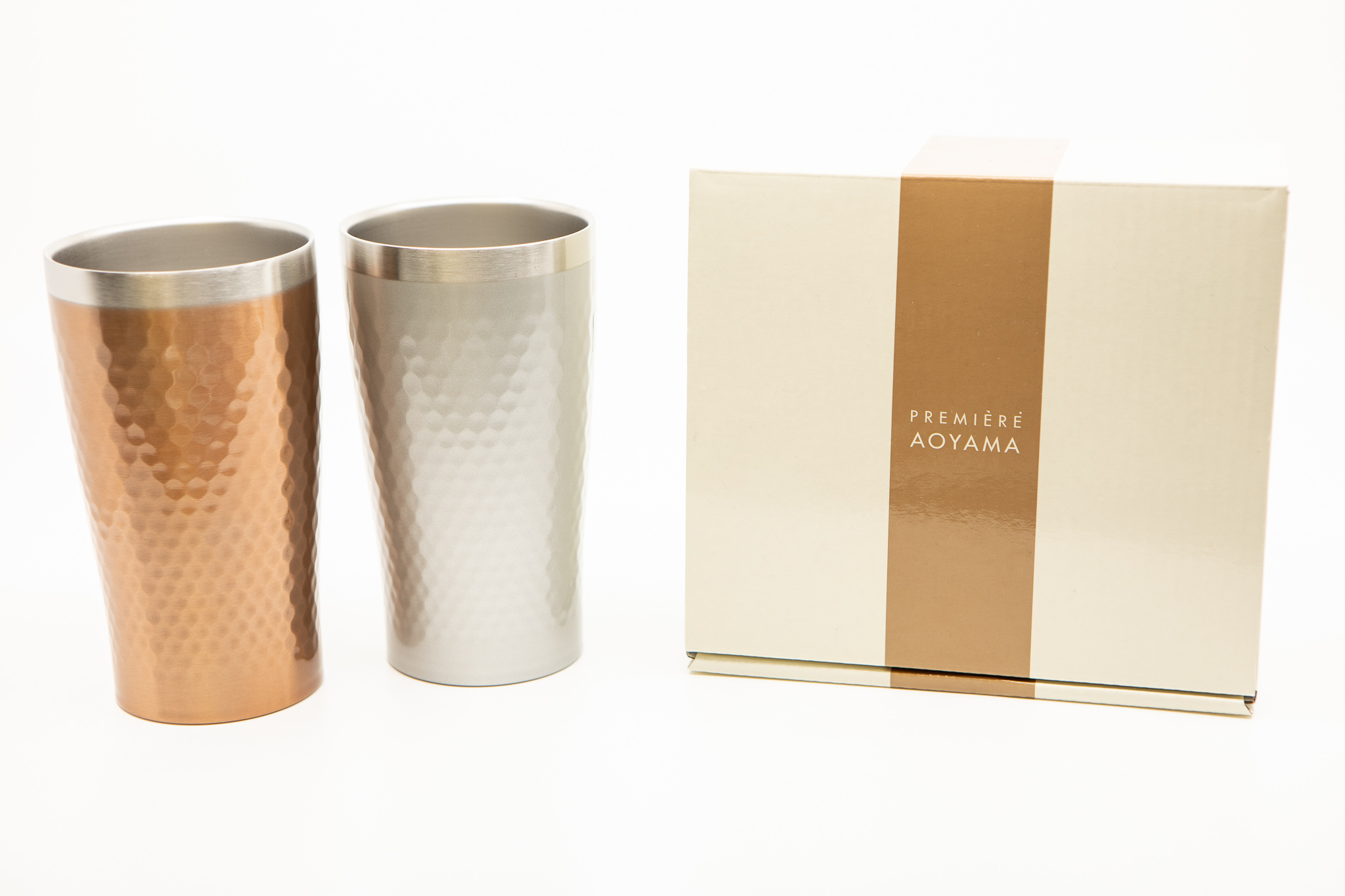 シンプルのシルバーと落ち着きのあるブロンズの2カラー。 表面の形も蜂の巣模様のメタリックで、通常のグラス型よりもお洒落な見た目ですよね。 上品な色のタンブラーですので、性別を問わずどんな年齢の方にもしっくりとくるデザイン。 引き出物に目上の方への贈り物にもおすすめです!