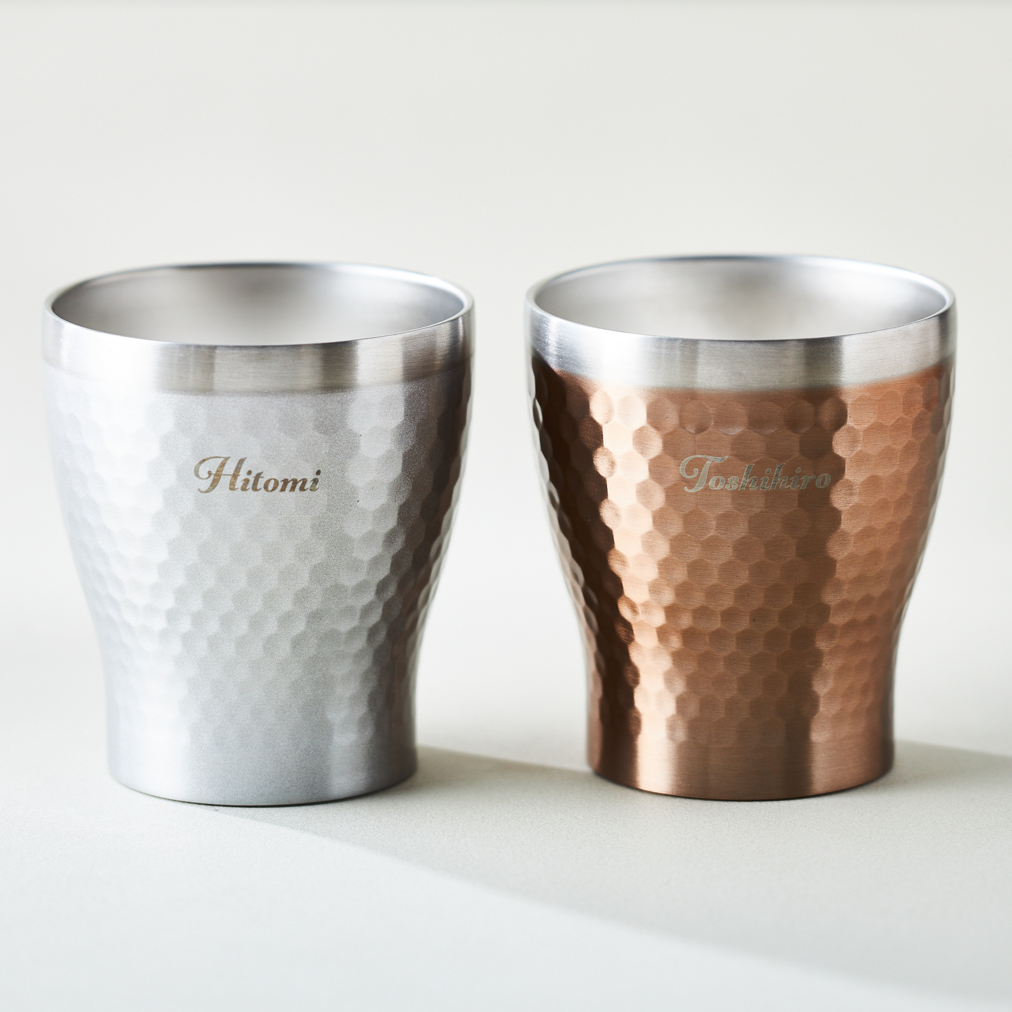 タンブラーにお相手のお名前を刻印できます。 ペアのタンブラー1つずつに刻印が可能なので、結婚祝いや記念日などの特別なプレゼントにおすすめです。 お名前の刻印をして、いつも以上に特別な贈り物をしてみてはいかがでしょうか。 ※ 名入れには、別途オプション料金がかかります ※ 画像はイメージです