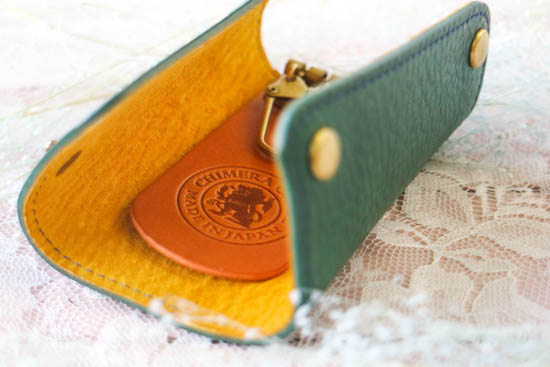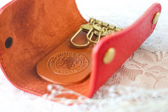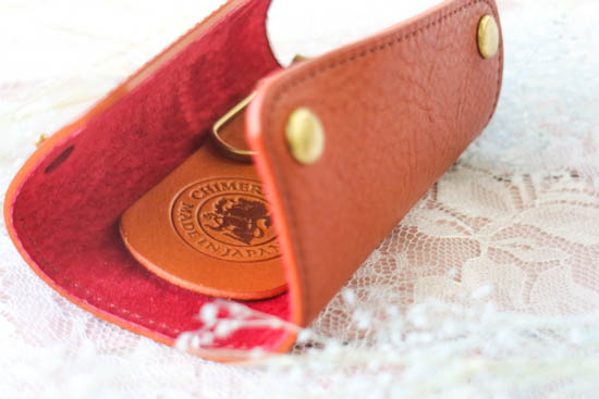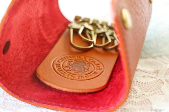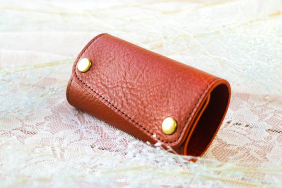 日本の職人が丁寧に仕上げた「キーケース」。一枚革を巻いてホックで留めるというシンプルな形。柔らかい革を使っているため、金具の下に補強の当て革がされています。毎日持ち歩き、幾度となく手に触れるキーケースこそ、経年変化を楽しめる天然素材がおススメです。