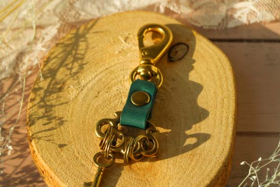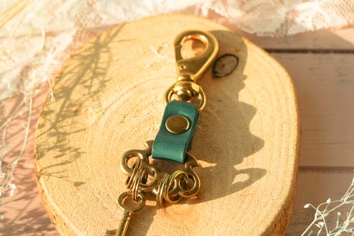 最高級のイタリア製レザーとアンティーク感ある金具を組み合わせたキーホルダー。彩どり豊かなレザーを使用したシンプルな作りで日本の熟練の職人が丹精を込めて1点1点丁寧に作り上げています◎ブランドロゴの刻印を施した金具がワンポイントになってお洒落!