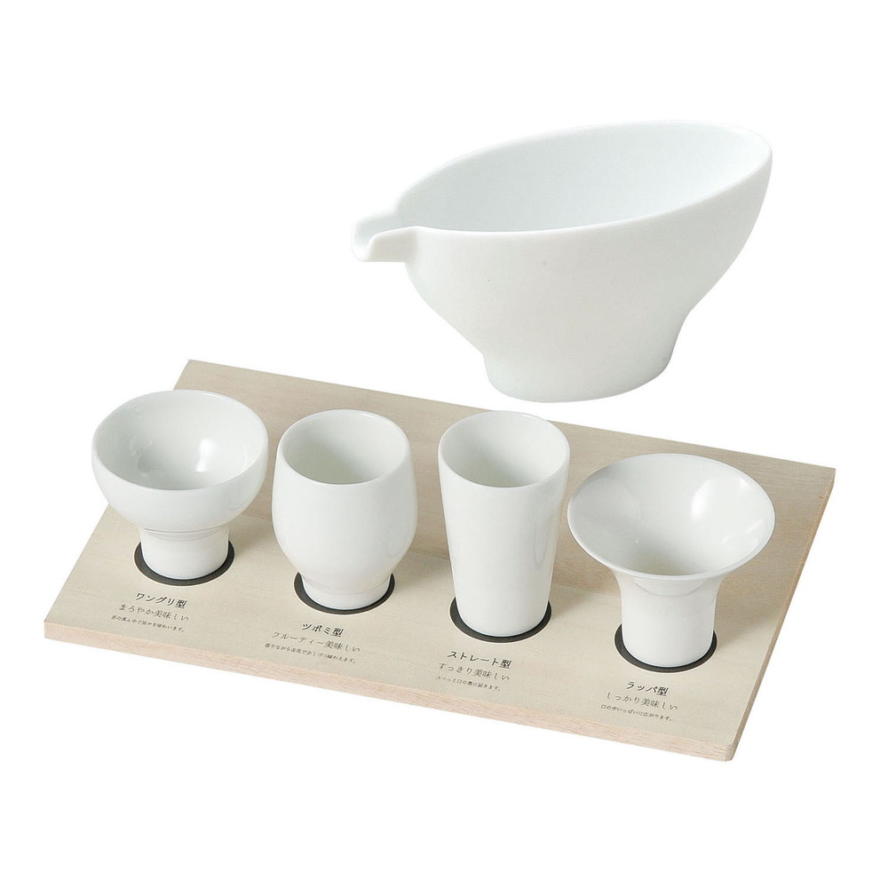 | セット内容 | 酒器×1、盃(ワングリ)×1、盃(ツボミ)×1、盃(ストレート)×1、盃(ラッパ)×1 |