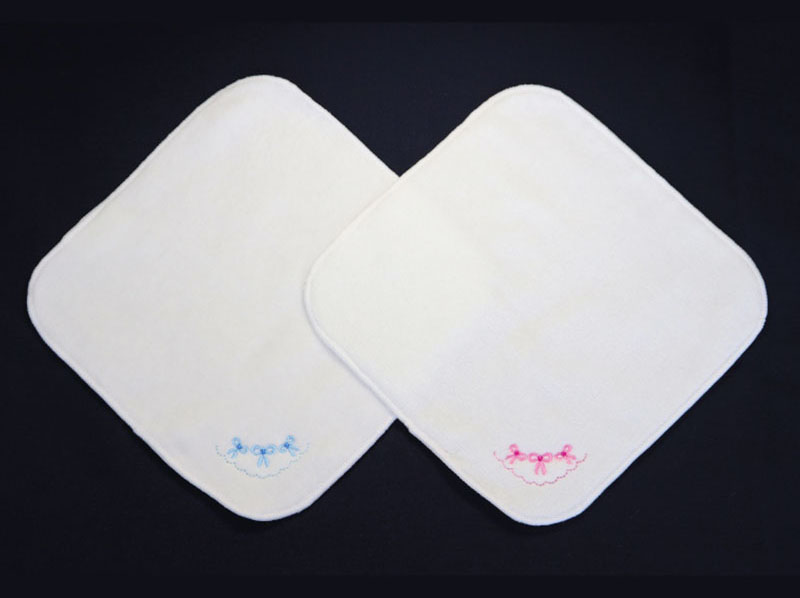 タオルハンカチにはお名前が書けるタグ付きです。