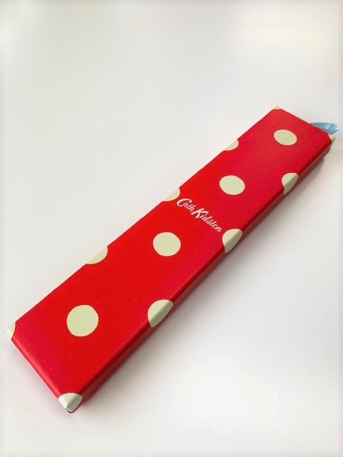 パッケージは赤ベースにドット柄が前面に入った可愛らしい仕上がり。 中身は【Cath Kidston】オフィシャルカラーの水色になっているのでギフトにもぴったりです。