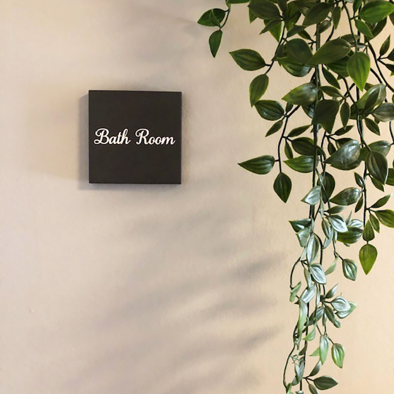 艶無しマットなタイルにお部屋名を彫刻した、高級感あふれるルックスが特徴です。 お色はグレー味のあるブラックとなります。