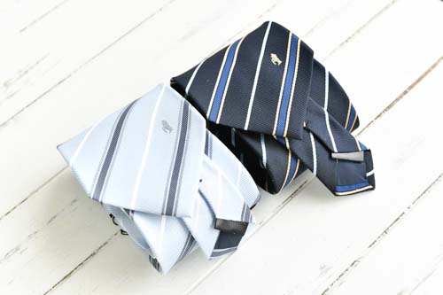 ネクタイの定番柄「レジメンタル」は、イギリスの連隊旗から誕生した、右上に向かう斜めのストライプ柄を指します。パッと目を引く柄で、印象を強めてくれることから、日本ではネクタイの定番柄として人気◎