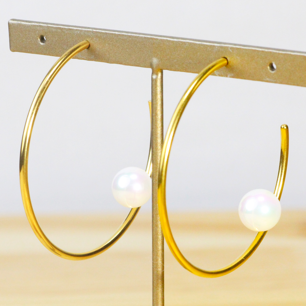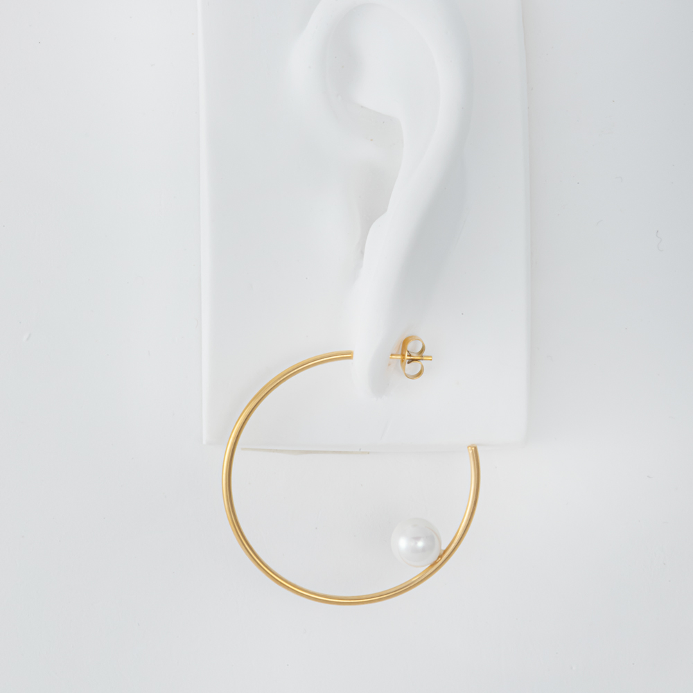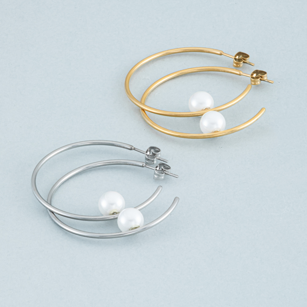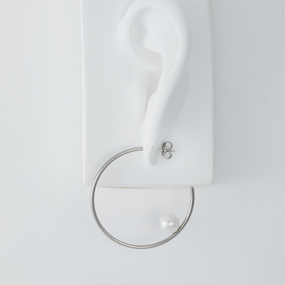 大口注文・法人のお問い合わせはこちらアレルギーフリーが嬉しいステンレスピアス。 ピアスとしてひとつは持っていたい、 大振りフープピアス。 髪型を気にせず楽しめるサイズ感はお洒落好きにはマストなアイテム。 甘辛ミックスでパールを一粒デザインしているので、いつもと違うコーデが楽しめます。