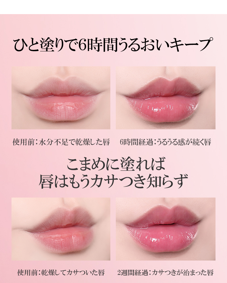 大口注文・法人のお問い合わせはこちら”しっとり艶めく唇もうカサつかない” パーソナライズリップケアになります。 「保湿成分ラノステロール」「素早くカサつきをカバー」「ふっくら柔らかな唇へ」 荒れやすいカサカサ唇をしっかりケアする保湿リップクリームです。 <ひと塗りでカサつきをカバー> 保湿成分ラノステロールが唇に潤いを与えます。 ひび割れ・カサつきのない唇を叶えます。 <一日中ふっくらと潤う唇に> 長時間の保湿効果で唇を健やかに保ち、ぷるぷるとした唇へと導きます。