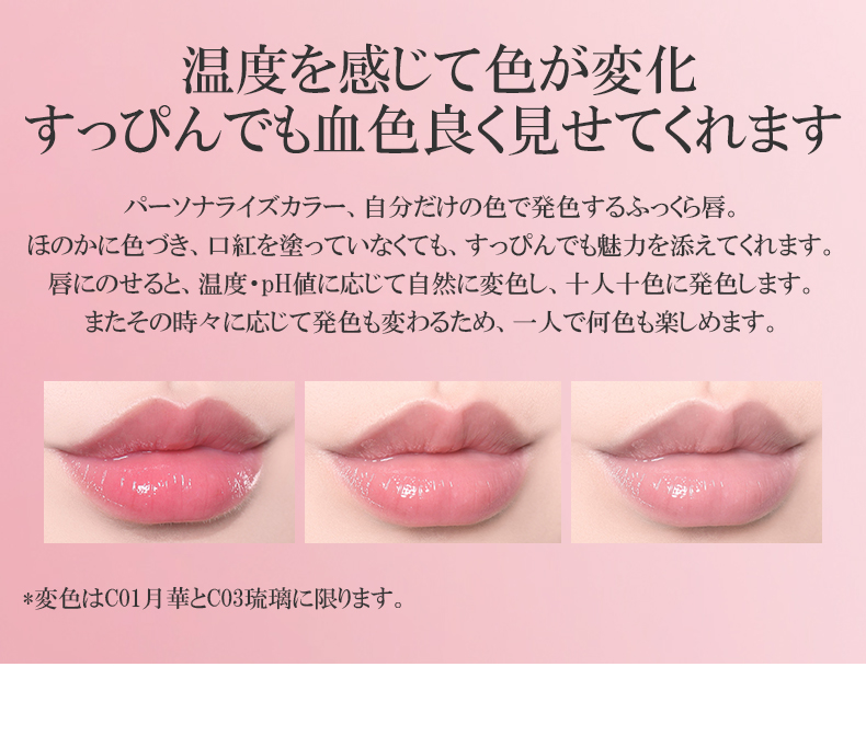 しっとり艶めく唇もうカサつかない、【CATKIN キャットキン】パーソナライズリップケアをお届け。唇にのせると温度、pH値に合わせて色づいてくれるので人を選ばずプレゼントしやすいのも嬉しい。「保湿成分ラノステロール」「素早くカサつきをカバー」「ふっくら柔らかな唇へ」荒れやすいカサカサ唇をしっかりケアする保湿リップクリームになります。一日中ふっくらと潤う唇に。