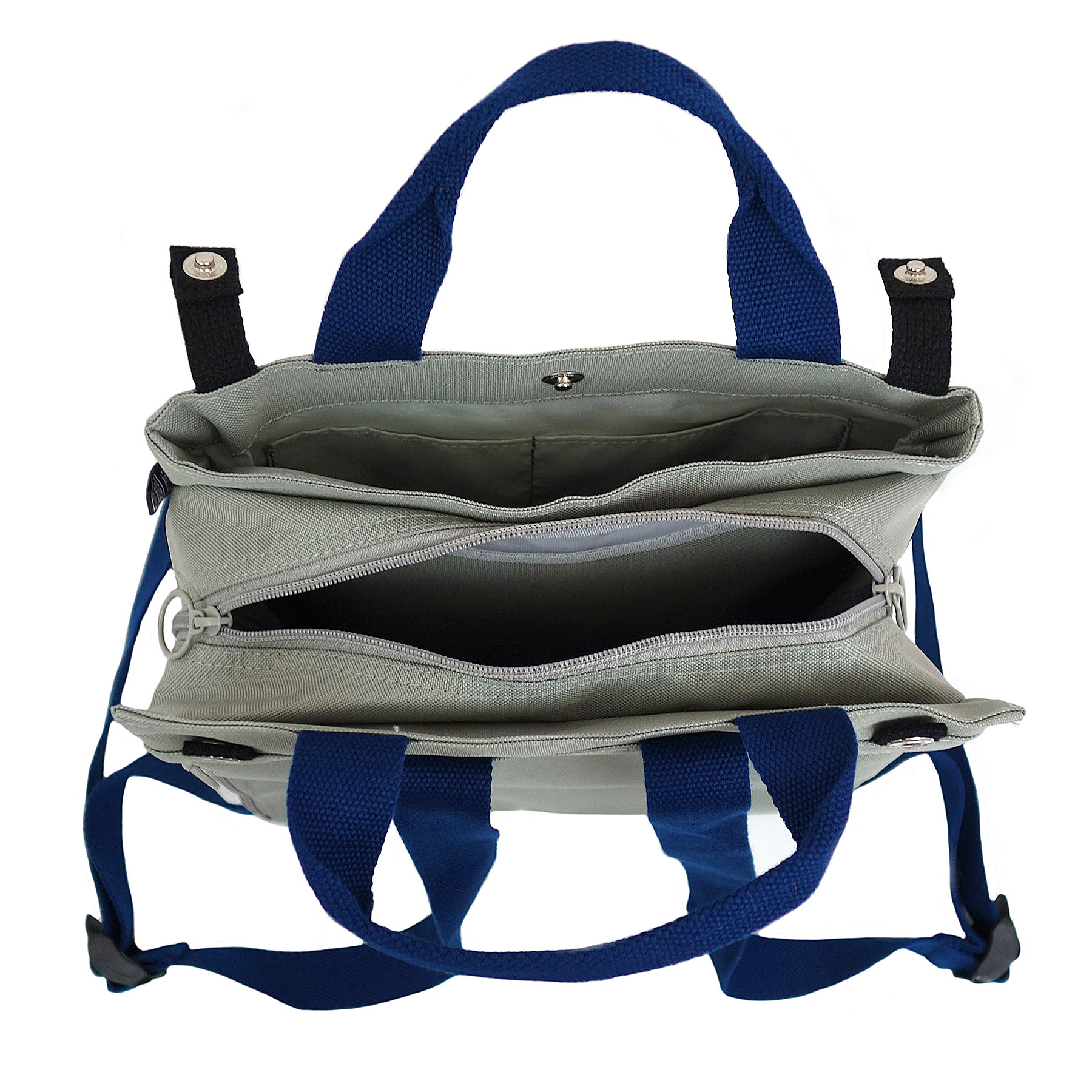<素材> 表地1:ポリエステル 持ち手:ポリエステル ドットボタン 裏PVB加 <ポケット> 内側ポケット:4(うちファスナー付1箇所) 外側ファスナー付ポケット:2