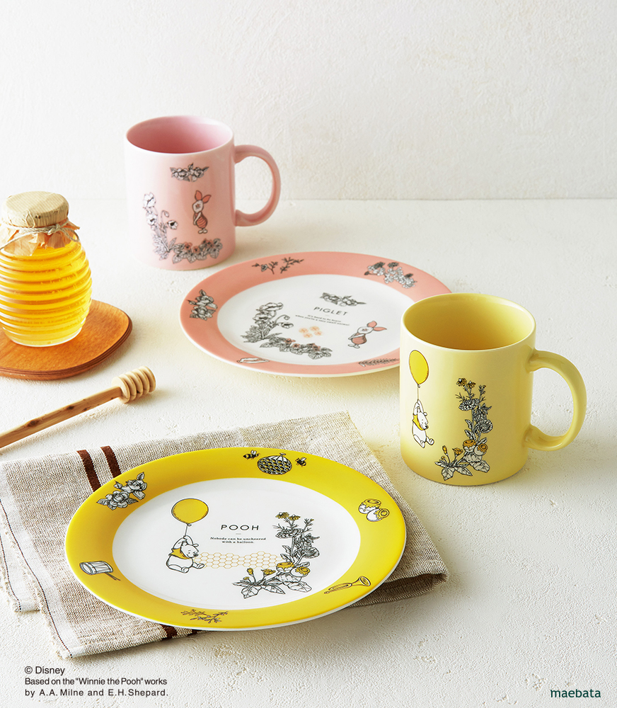 「くまのプーさん」の洗練されたボタニカルアートと、あざやかなビタミンカラーがおしゃれなペアモーニングセットです。