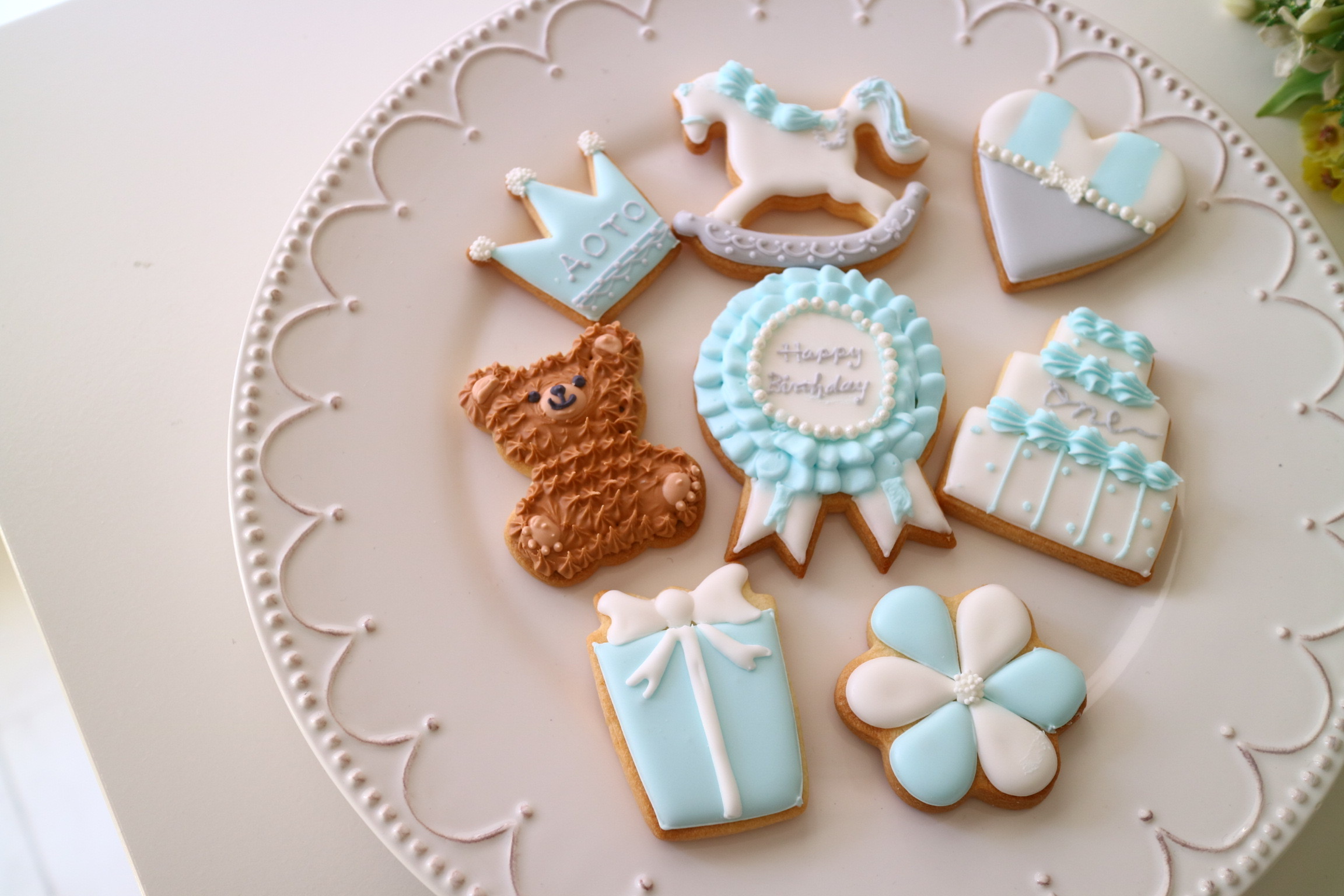 大口注文・法人のお問い合わせはこちらお子様の特別なお祝いの時間に、、 ケーキにデコレーションしても、プレートに飾っても可愛いです! 一年に一度の大切な誕生日を可愛いアイシングクッキーで飾りつけしませんか?