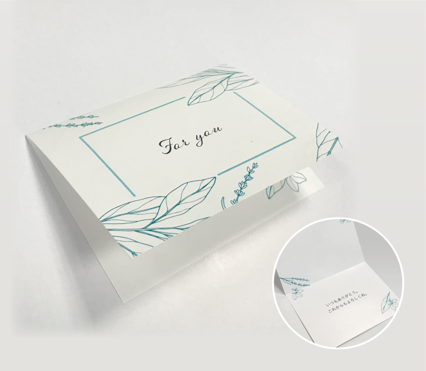 ※(メッセージあり)のデザインをご選択いただきますと、カードが動かないよう剥がしやすいテープ等で固定させていただく場合もございます。あらかじめご了承ください。
