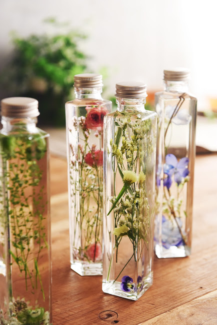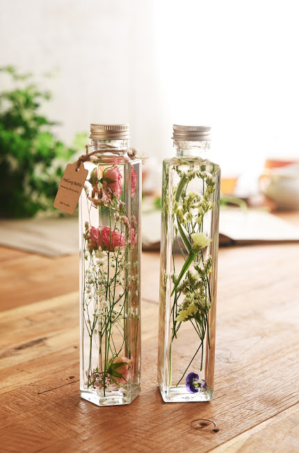 雑貨屋で見かけるような上品で可愛らしいドライフラワーをぎゅっと詰め込んだ《ヒーリングボトル2本セット》。ガラス製のボトルに専用のオイルを浸し、みずみずしい状態でお花や植物を観賞いただけます。場所も選ぶことなく、ご自宅用でも、ちょっとしたギフトにも最適です◎