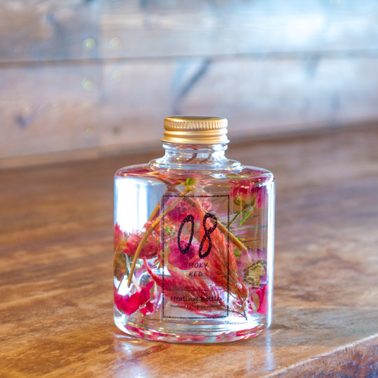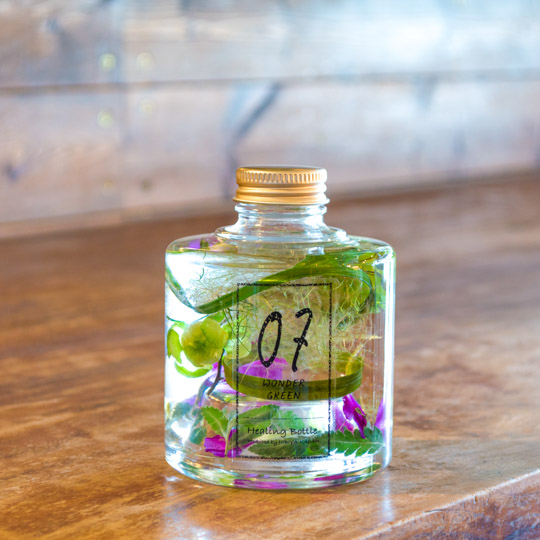 『Healing Bottle(ヒーリングボトル)』はフレッシュドライ加工した植物そのものを Bottleに閉じ込めた‘植物標本’です。動かすとBottle の中でやさしく揺れる、その動きも癒しに繋がる。 その日その時の気持ちや、気分、ギフトであれば、相手へ贈りたい思いを『Healing Bottle』に込めてお届けしませんか?