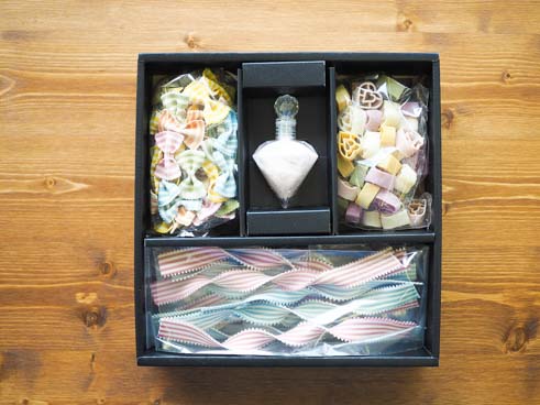 人々の生活に浸透し、もはや社会現象にもなったインスタグラム。そんなインスタ映えにコミットしたのがこのプレゼントです。 黄色、緑、ピンク。こんな可愛らしいパスタはなかなかお目にかかれません。カラフルで可愛らしいパスタプレゼントは洒落が効いていて、贈り主の株も急上昇間違えなしですよ!