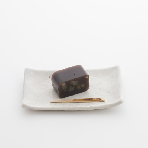 栗の風味を生かすためあえて甘露煮ではなく蜜漬けにした栗を贅沢にちりばめた栗羊羹。