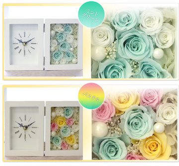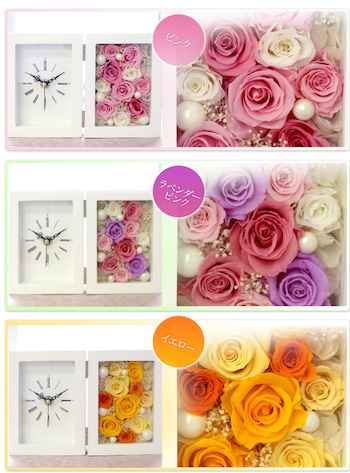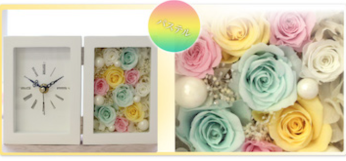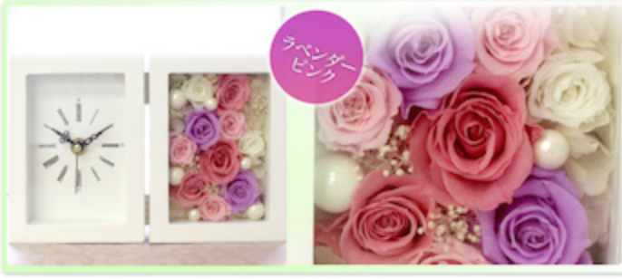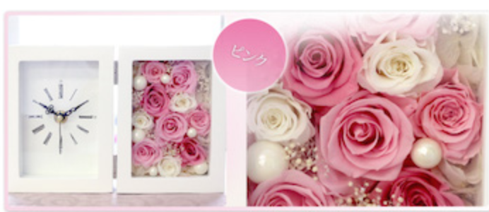 大口注文・法人のお問い合わせはこちら時計は生活には欠かせない家具であり、良く見ることが多いと思います! そんな時計に一手間加えて、可愛くて見て楽しめる時計が、バラの置き時計です! このバラは、プリザードフラワーと言って枯れないバラを使っているので、時は過ぎていきますが、バラは一生綺麗なまま保ち、毎日華やかな気分を与えてくれます!!