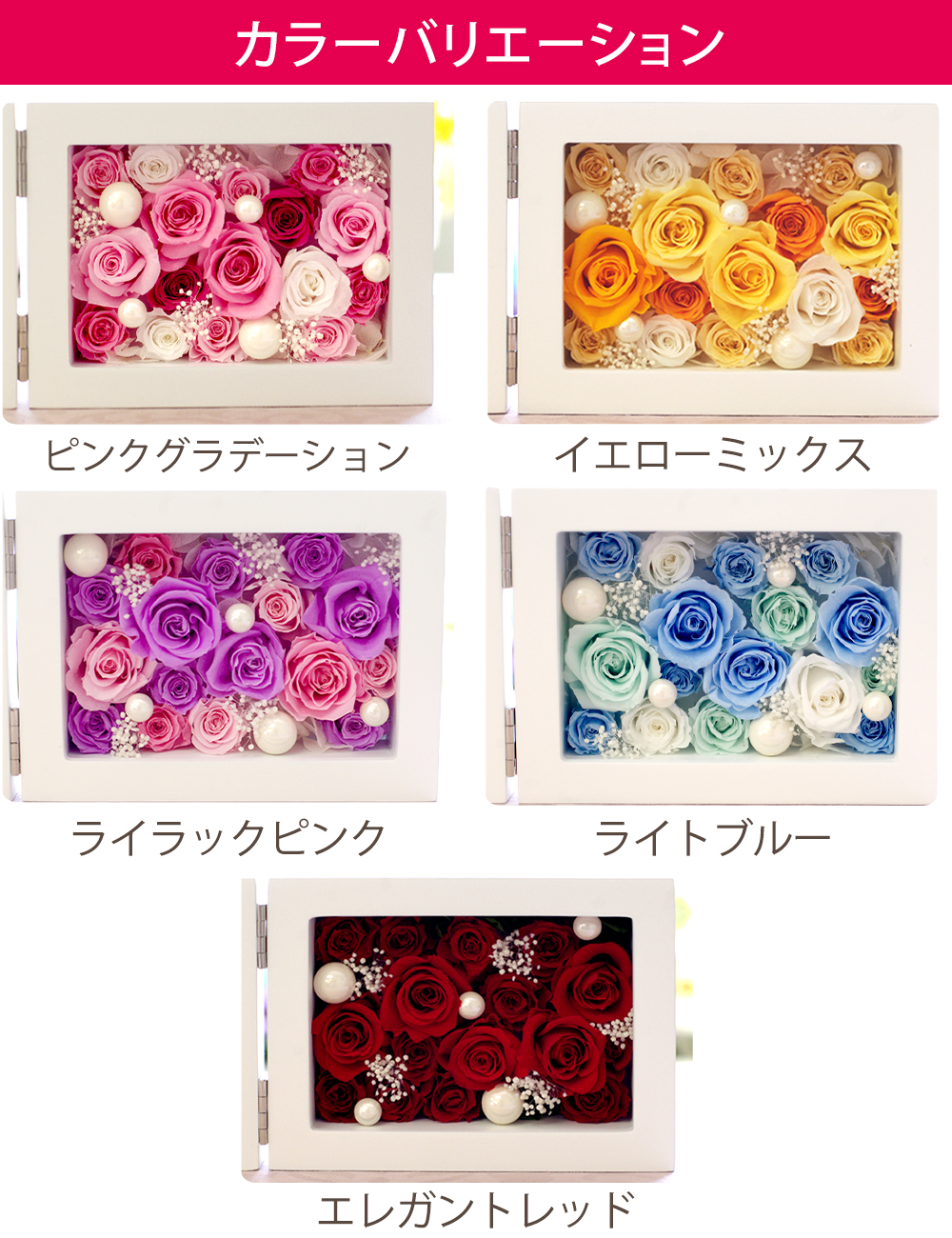 大口注文・法人のお問い合わせはこちら思い出の写真と共にお花を楽しんでもらえるギフトになっています! 大切な人に花束を送るのもいいと思いますが、一週間立ってしまうと、枯れてしまいせっかくのプレゼントが記憶の中だけになってしまいます....。 ですが、プリザーブドフラワーは、一生枯れることはありません!! メモリアルメッセージボックスは、見て楽しめ、インテリアとしてお部屋の雰囲気を華やかにしてくれます♡ 大切な人への贈り物として最高のギフトになること間違いなし!!