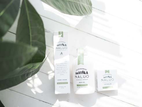 下川町の森で採れた3種の植物の芳香蒸留水を使用した「ハンドクリーム」、北海道産植物油を中心に配合した「リップバーム」、ナルークオリジナルの香りを全身にまといながら保湿できる「ボディオイル」のセット。森の香りを存分に楽しんでいただけるボディケアセットとなっています。