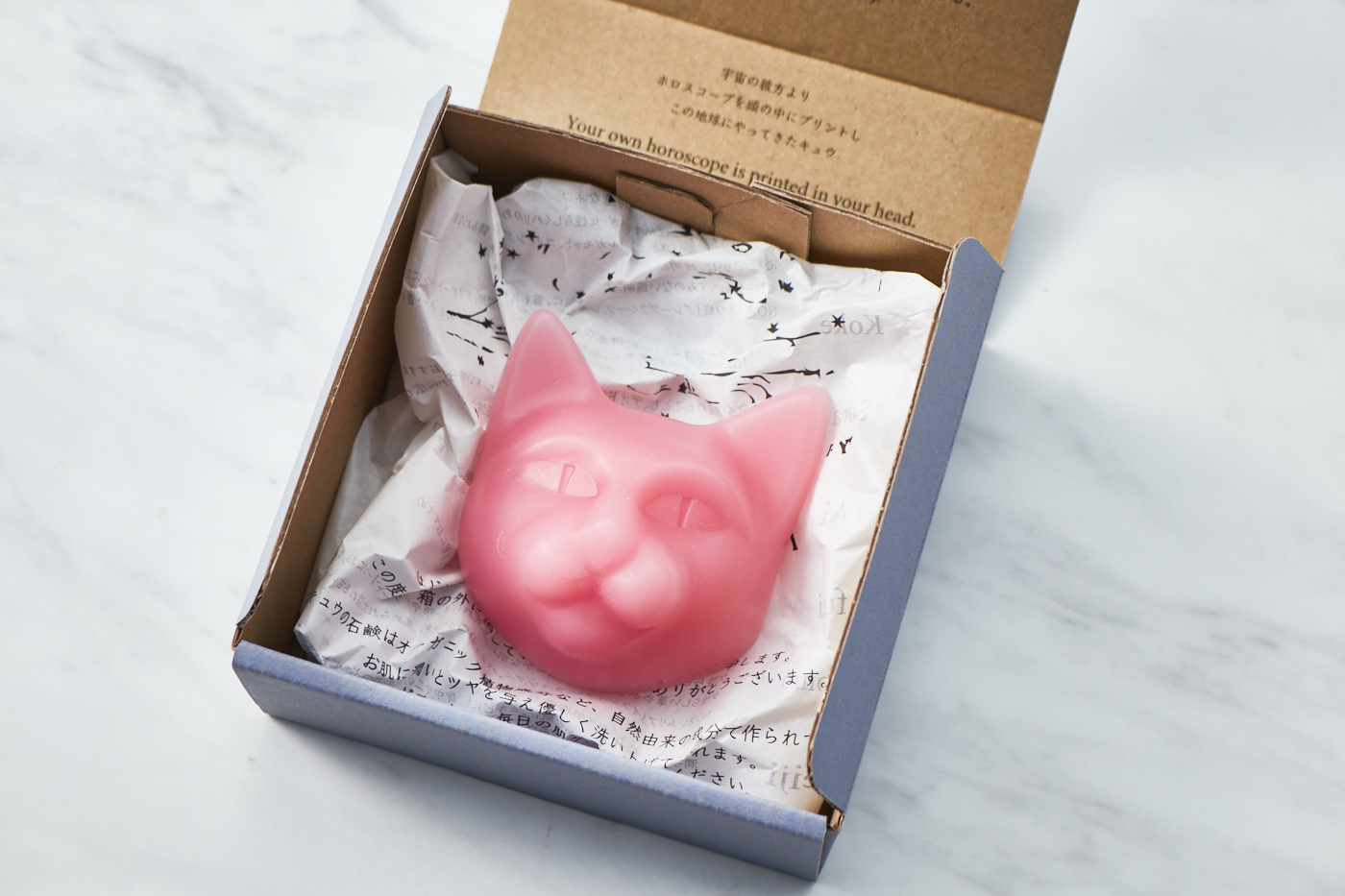 お肌のための成分を配合し、植物成分で色付けしたイロソープにランドスケープアロマを配合した、猫型の石鹸です。
