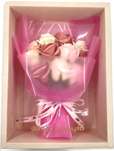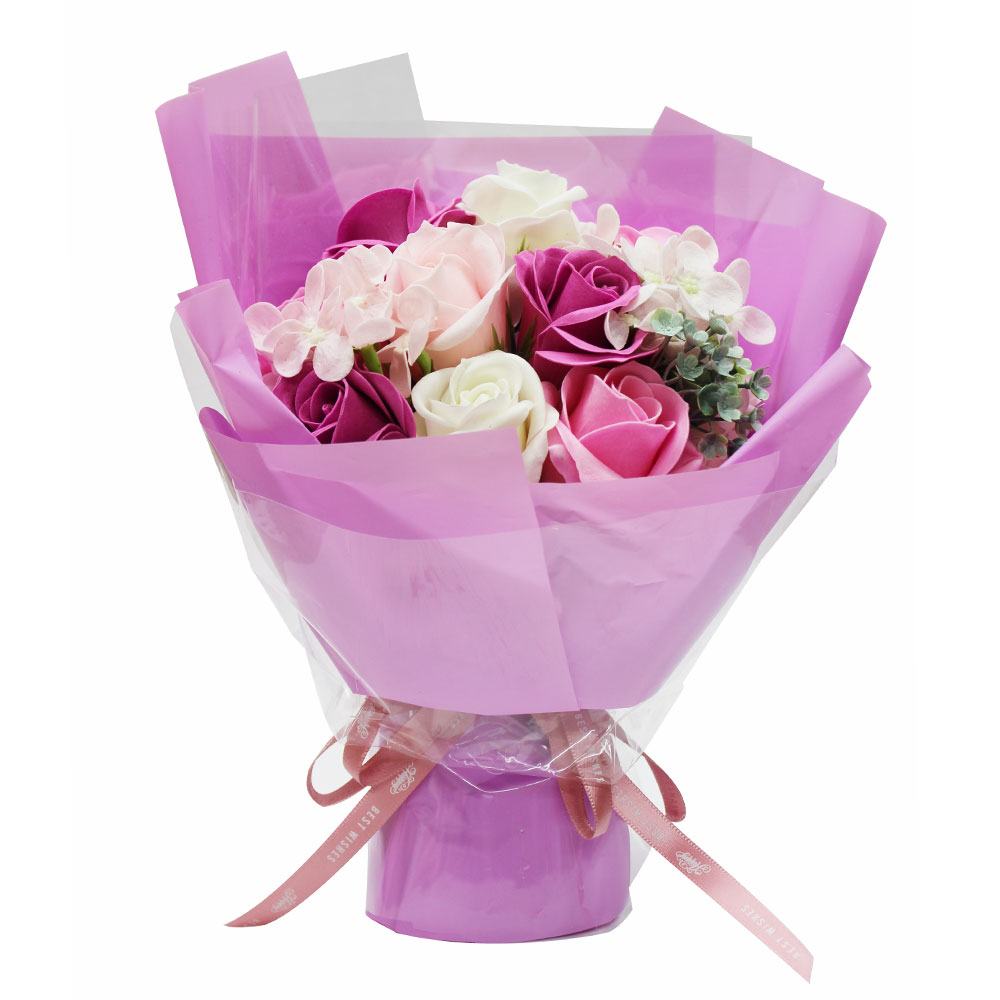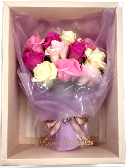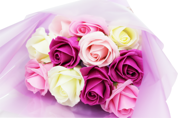 ほんのりシャボンの良い香りがする、石鹸で作られた観賞用フラワーブーケ。