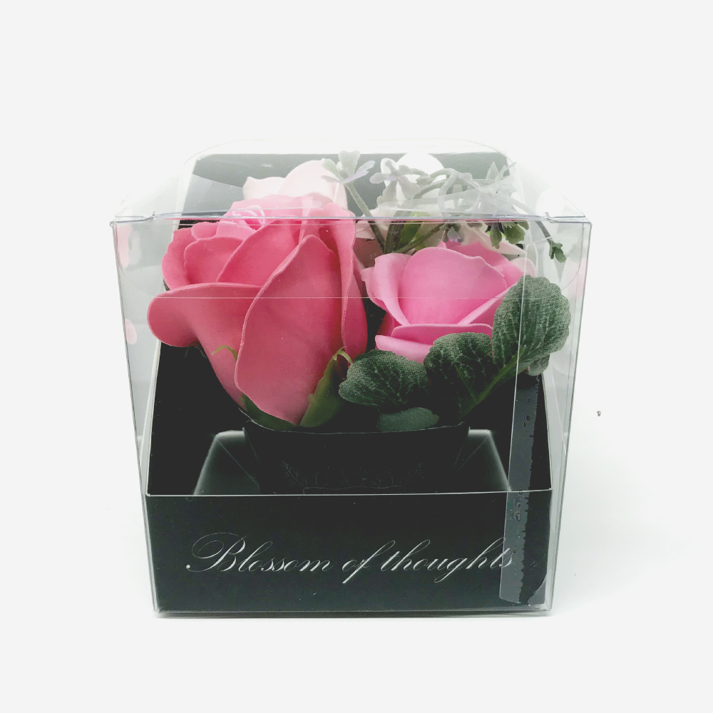 石鹸から作られた観賞用のお花です。 水やりの必要もなく、枯れる心配もないので、美しさを保ったまま長く飾っていただく事が可能です。 石鹸で作られているため、ほんのりシャボンの良い香りがします。 カップケーキのような形状になっており、箱から出して飾っていただくことも可能です。