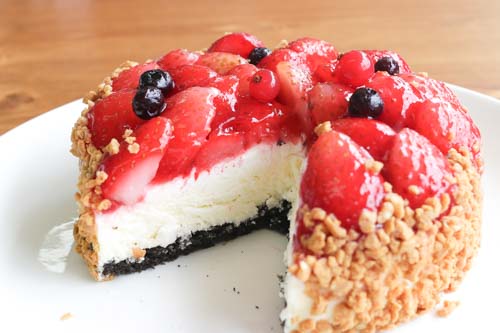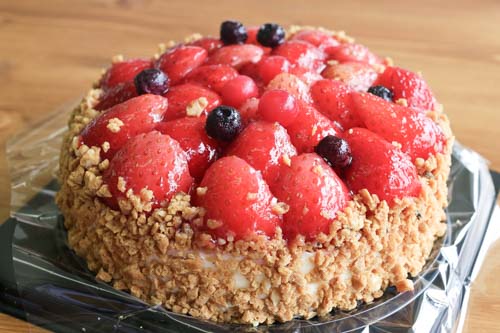 レアチーズケーキをベースに栃木産のイチゴ・ブルーベリー・グロセイユをトッピングした豪華なケーキ。真っ赤なラズベリーのナパージュで仕上げているので、甘酸っぱいベリーの香りが漂う鮮やかな味わいになります◎