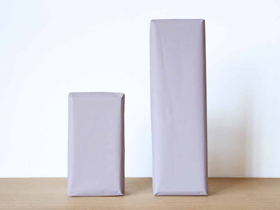 パープルのラッピングペーパーでお包みします。 裏面にはknotのオリジナルシールで特別なギフトに。