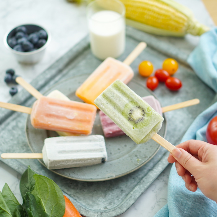 フルーツと野菜がギュッっと詰まったカラフルで可愛い《べジターレ》のスムージーアイスバーです。